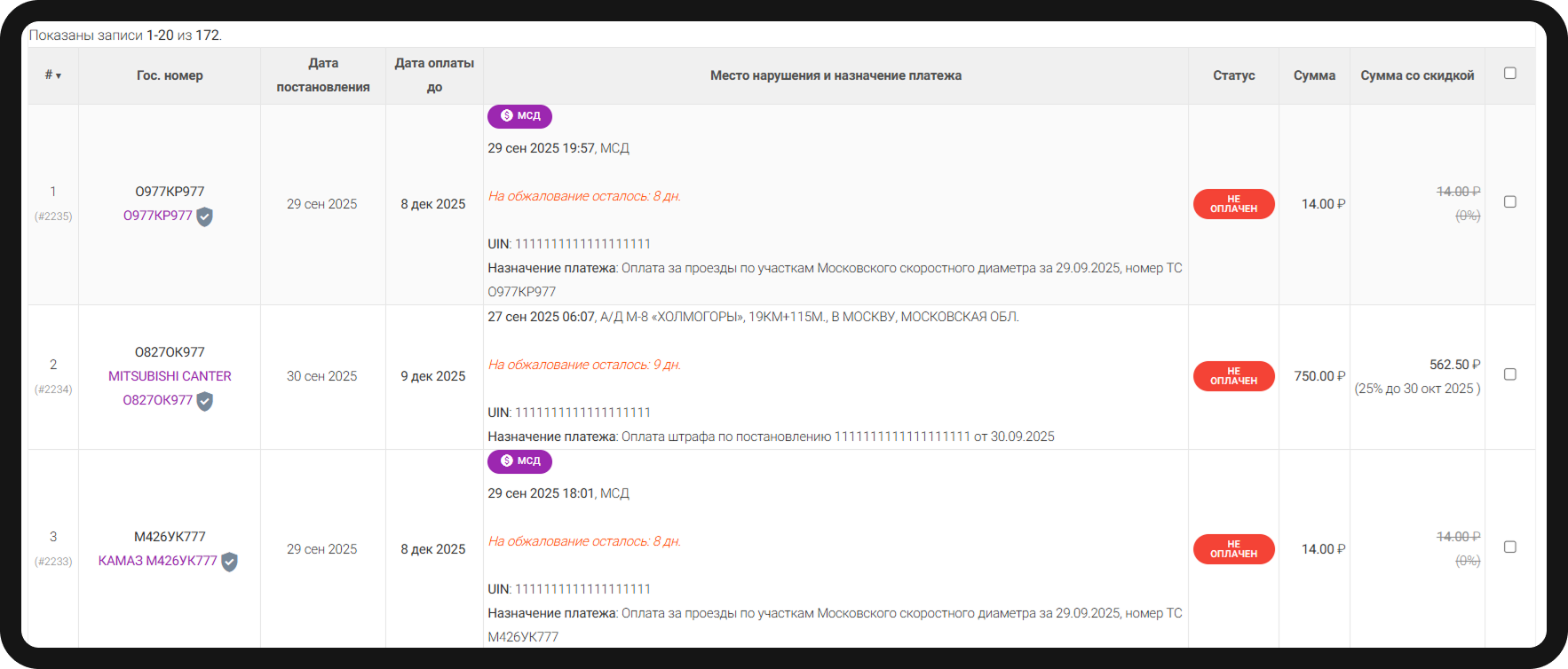 отслеживание штрафов ГИБДД, РосТрансНадзор, МАДИ, Парковки, ЦОДД. Платные дороги - МСД, М12, М11 и т.д. (Автоматически проверяйте штрафы и статус полисов ОСАГО. Оплачивайте всё вовремя, не отвлекаясь от дел.)